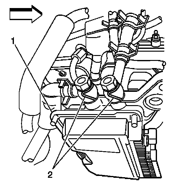 12. Remove the fuel lines (2) from the control module (1) and discard washers.