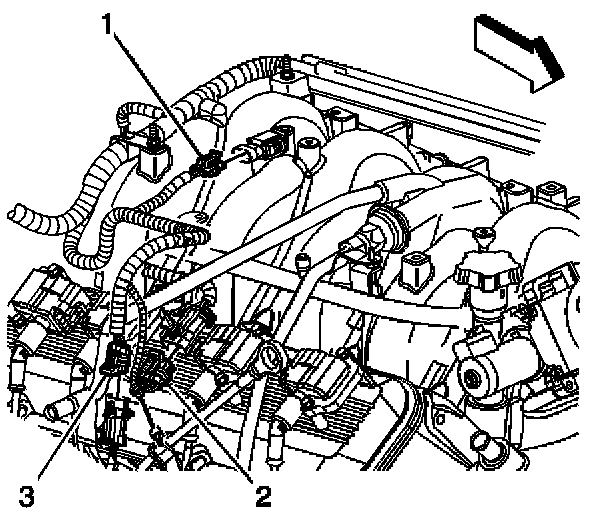 3. Remove the ECT sensor electrical connector from the oil fill tube bracket.