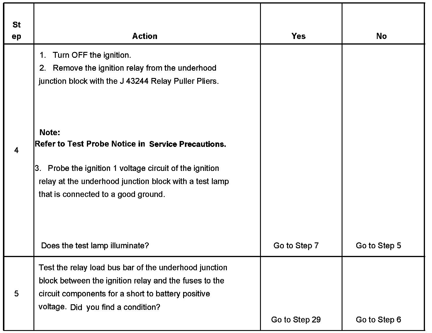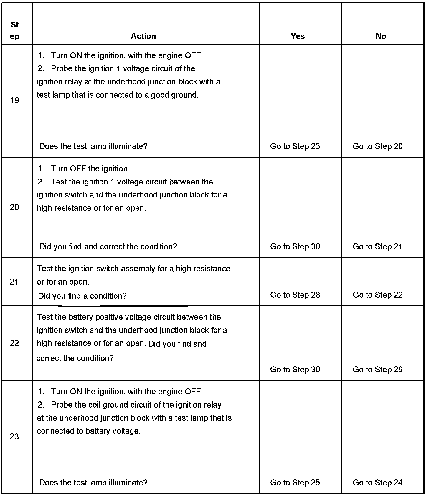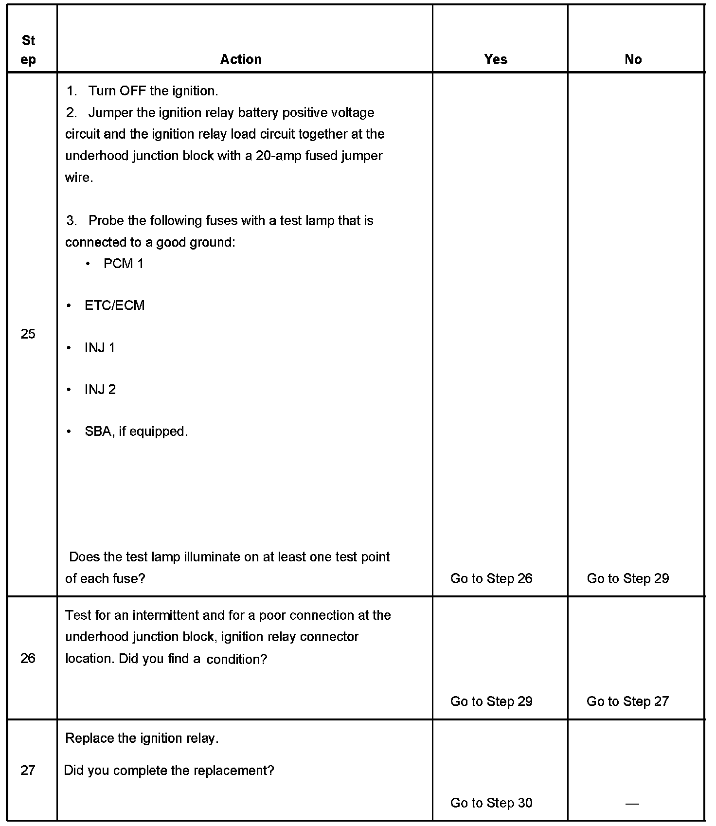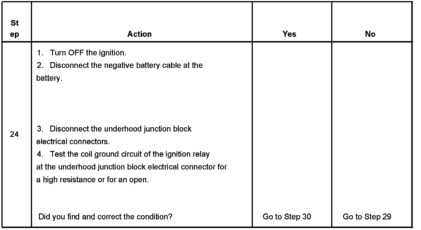 The ignition relay table assumes that the vehicle battery is fully charged.