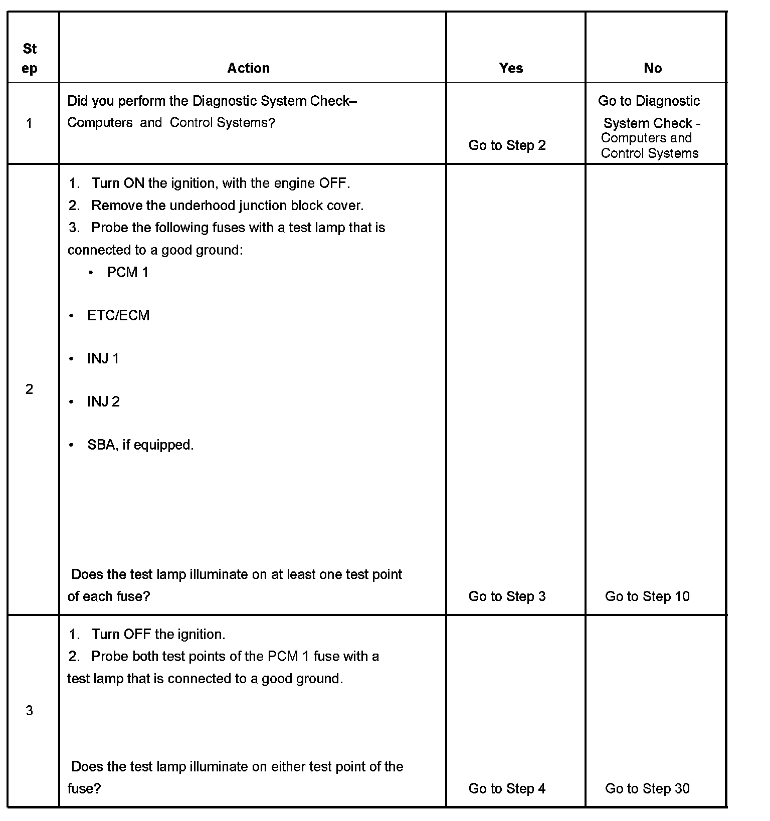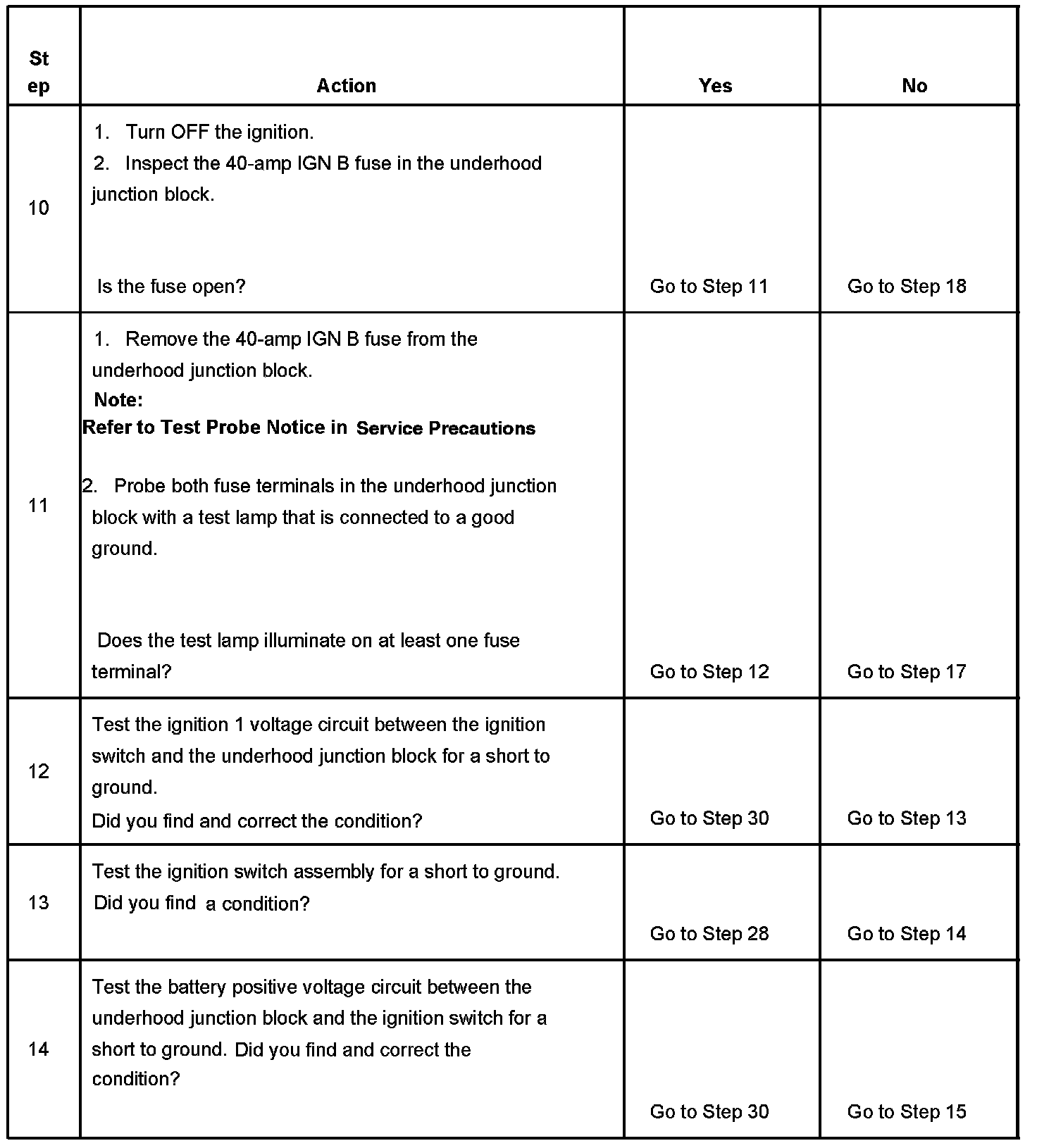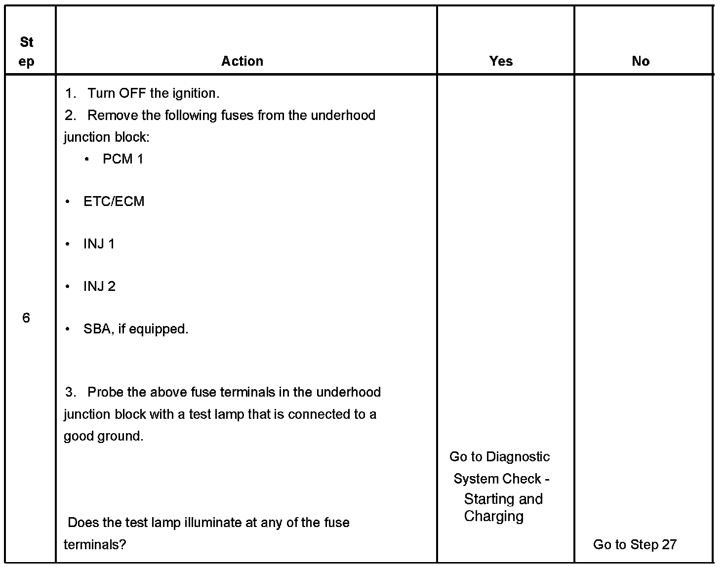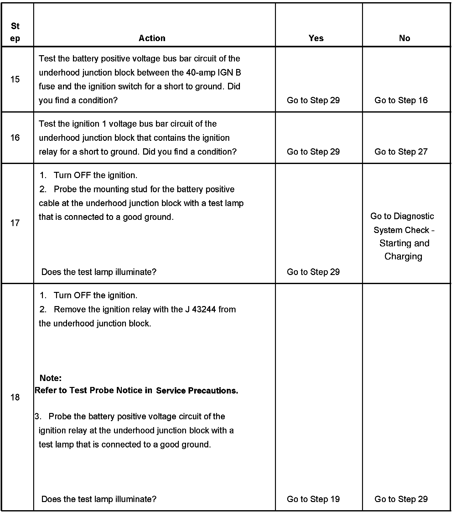 The ignition relay table assumes that the vehicle battery is fully charged.
