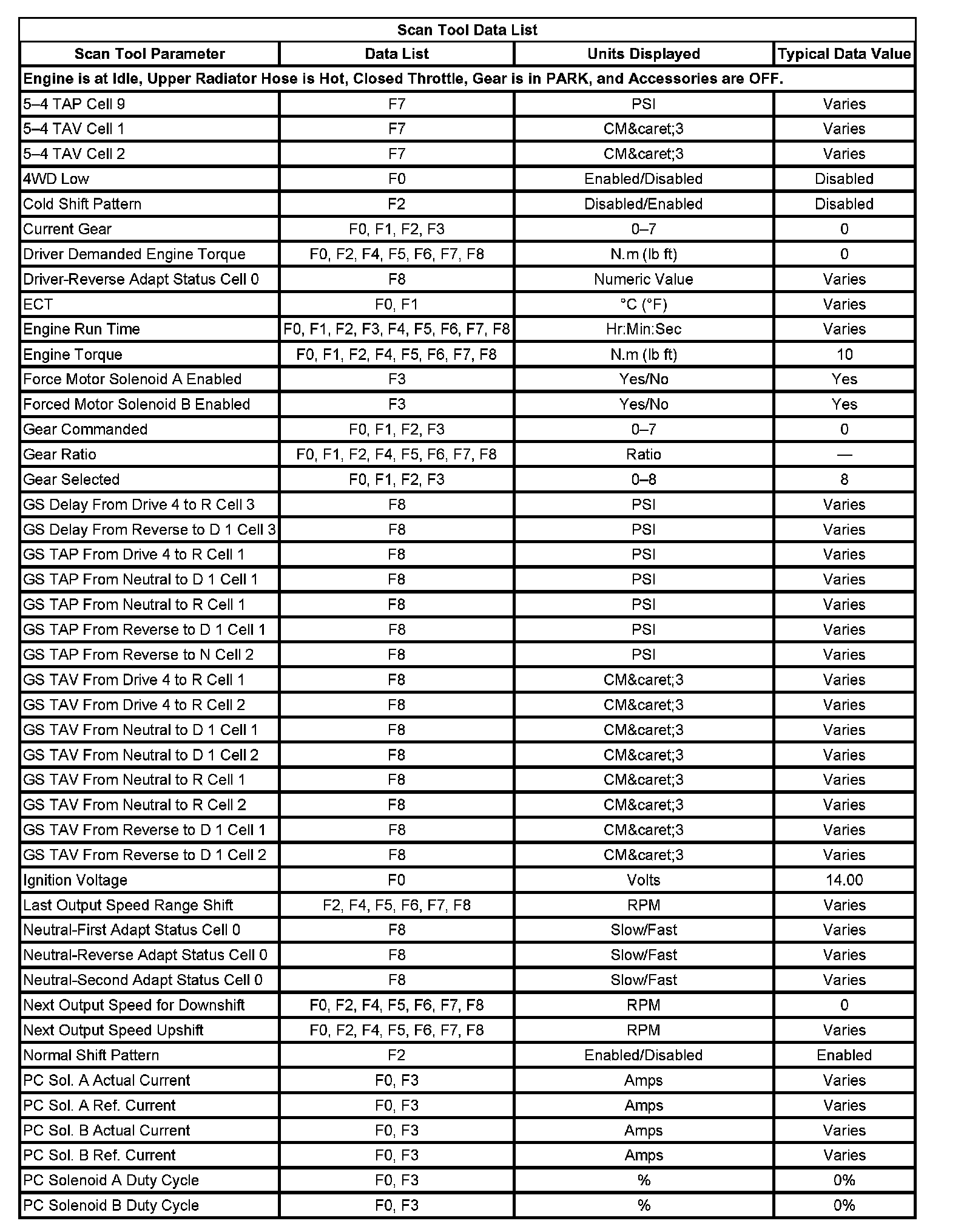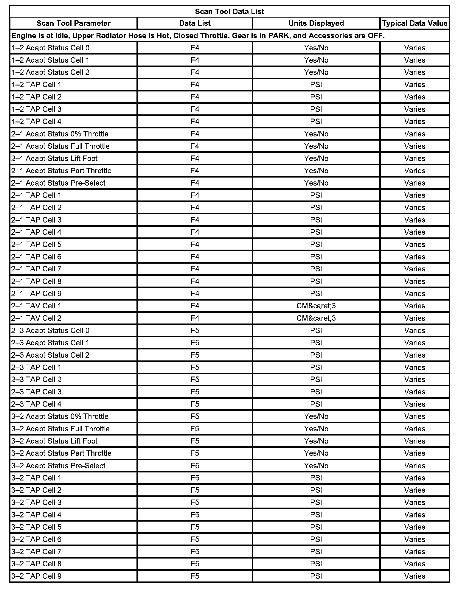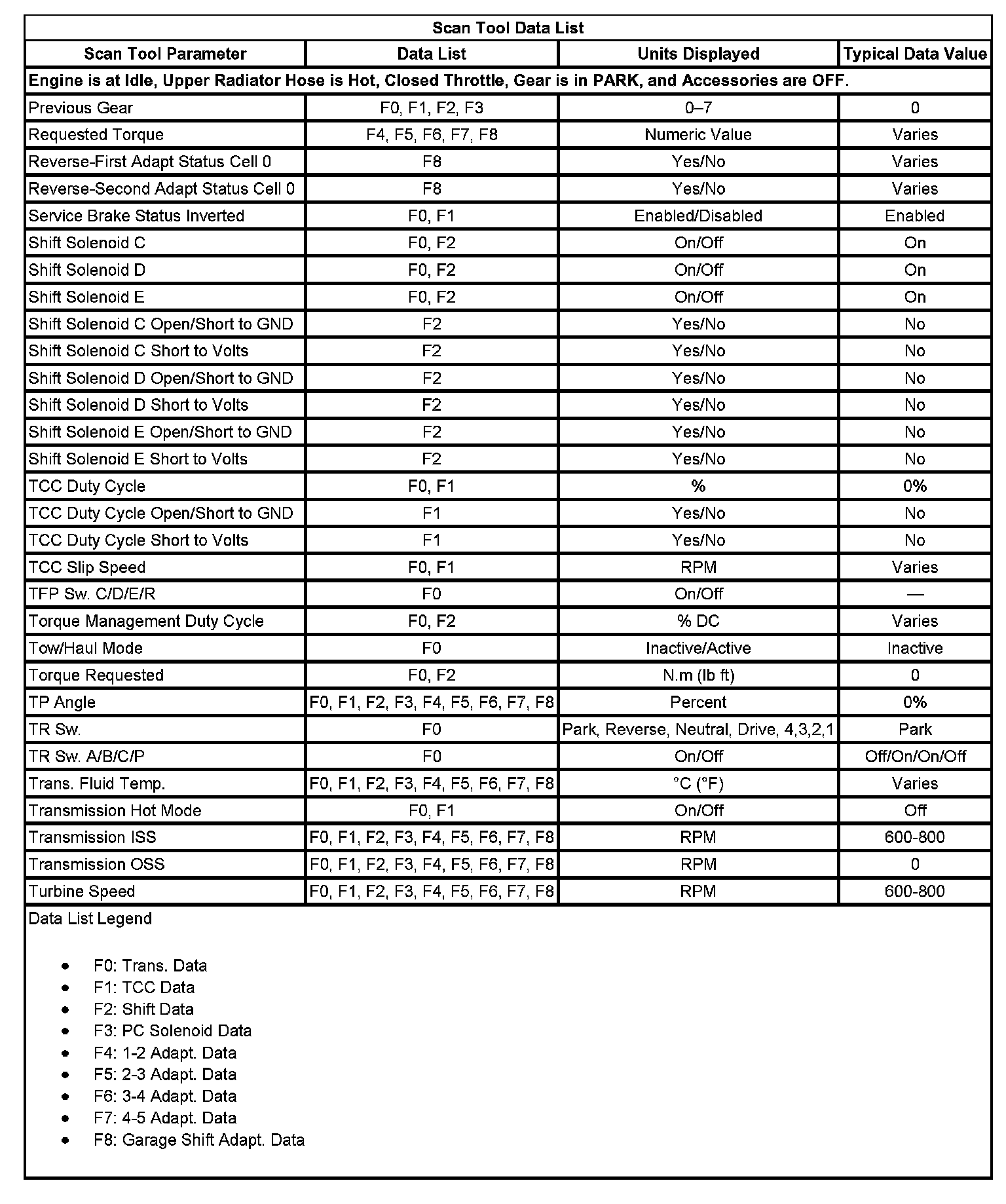 Scan Tool Data List