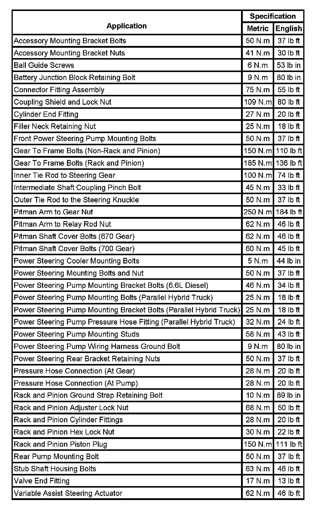 Fastener Tightening Specifications