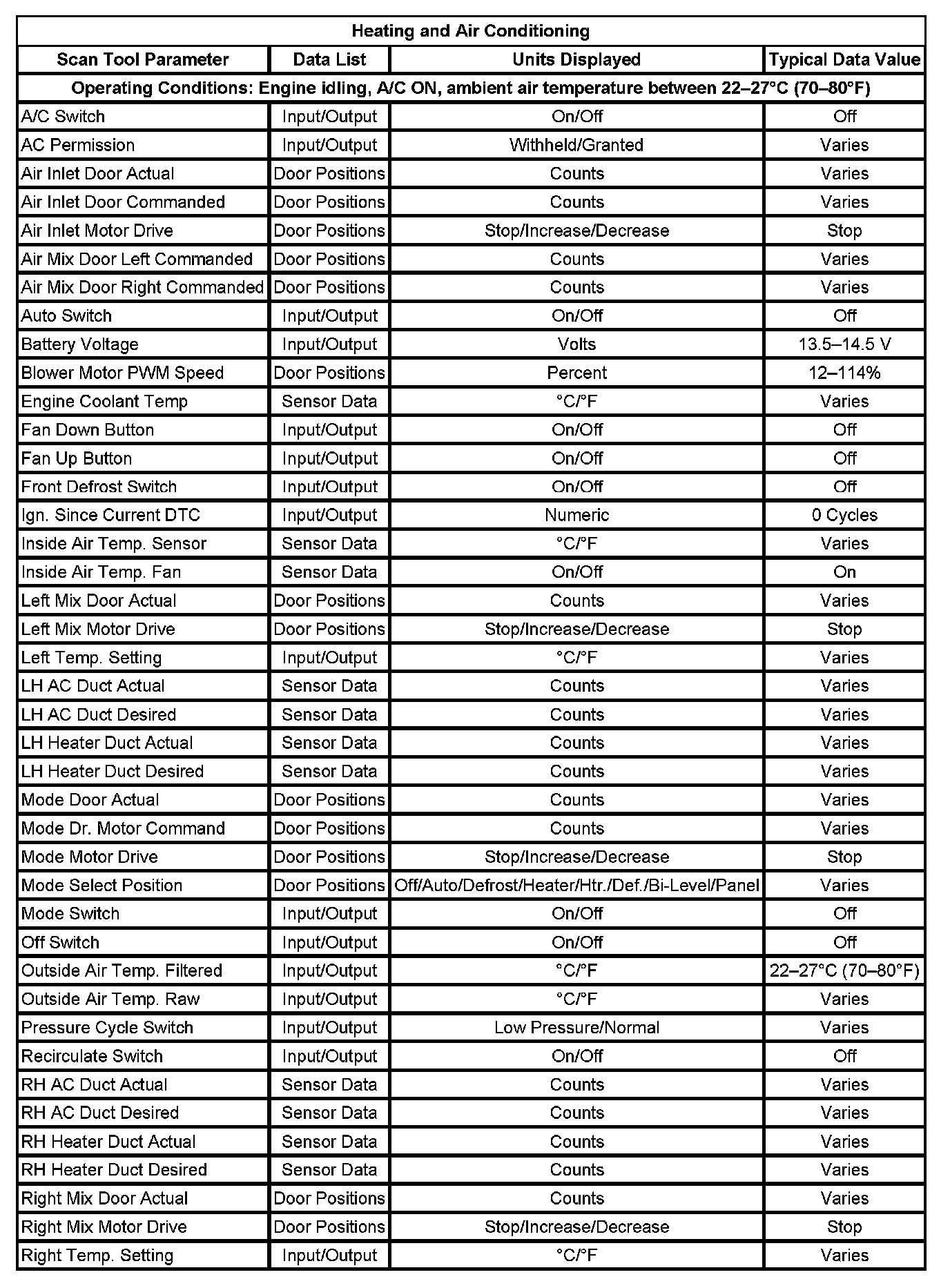 Scan Tool Testing - HVAC System - Automatic