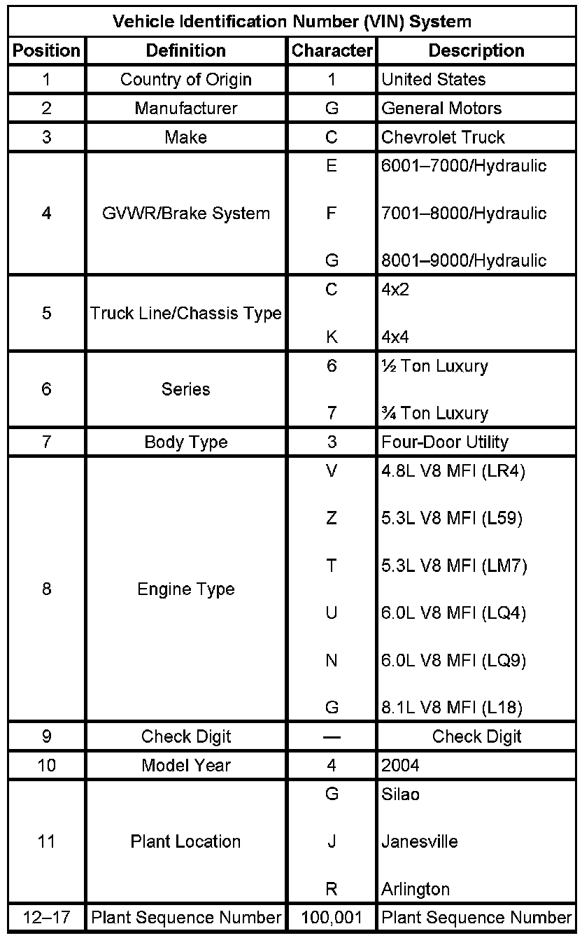 VEHICLE IDENTIFICATIONVehicle Identification Number (VIN) System: