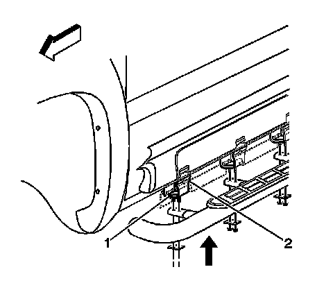 1. With the aid of a helper, remove the retaining nuts and the spacers (1) from the bottom side of the assist step, and remove the assist step from the vehicle.