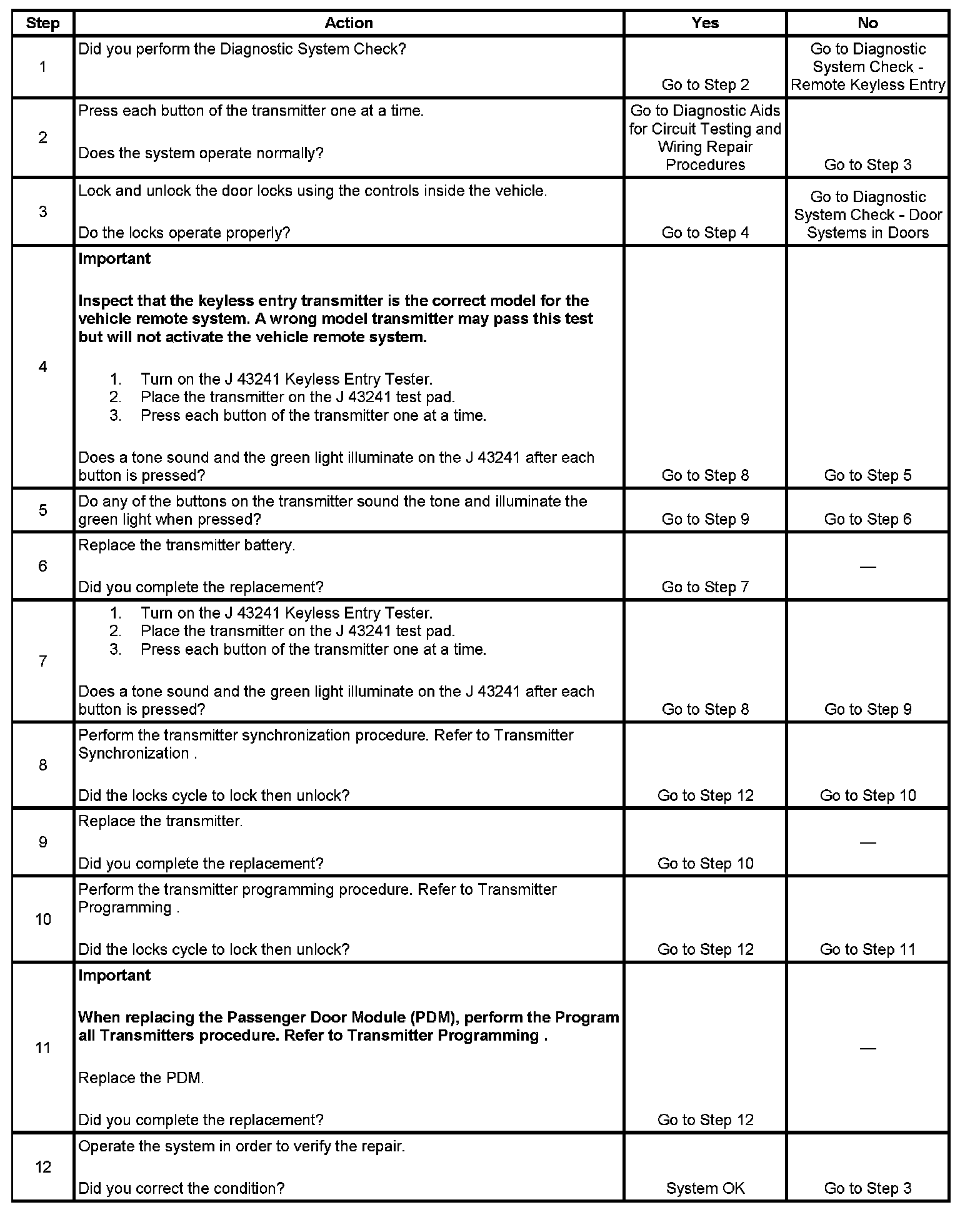 Keyless Entry System Inoperative