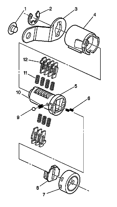 IMPORTANT: The door lock cylinder tumblers are not self-retaining. Hold the tumblers in place when the key is not in the lock cylinder. Hold the lock tumblers (12) in place when performing the next steps.