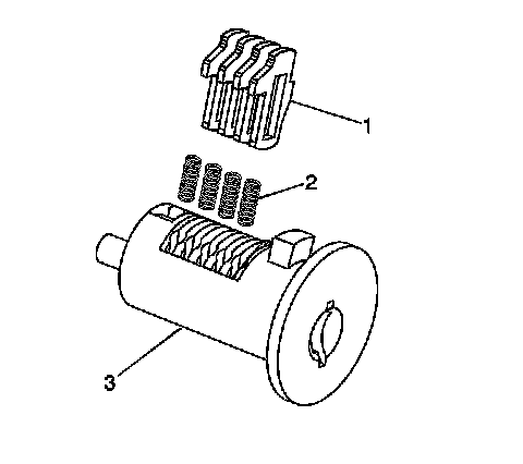 6. Inspect for the correct loading of the tumblers (1) by inserting the key into cylinder (3). All of the tumblers should be flush with the lock cylinder.