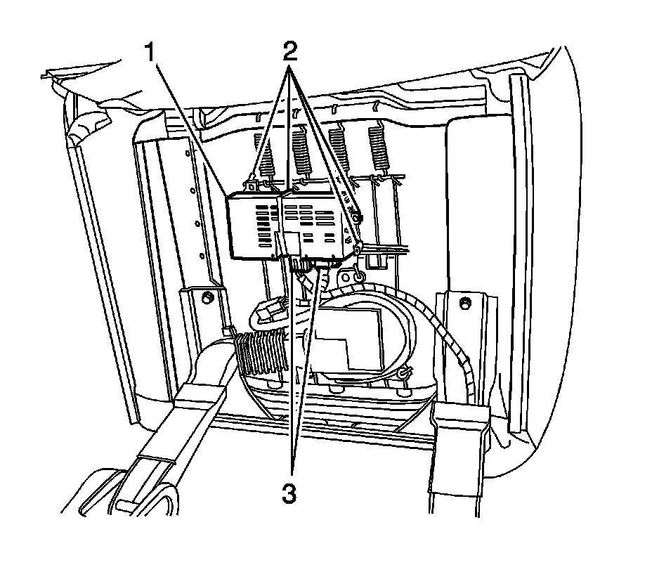 1. Position the climate control module (1) to the seat cushion frame.