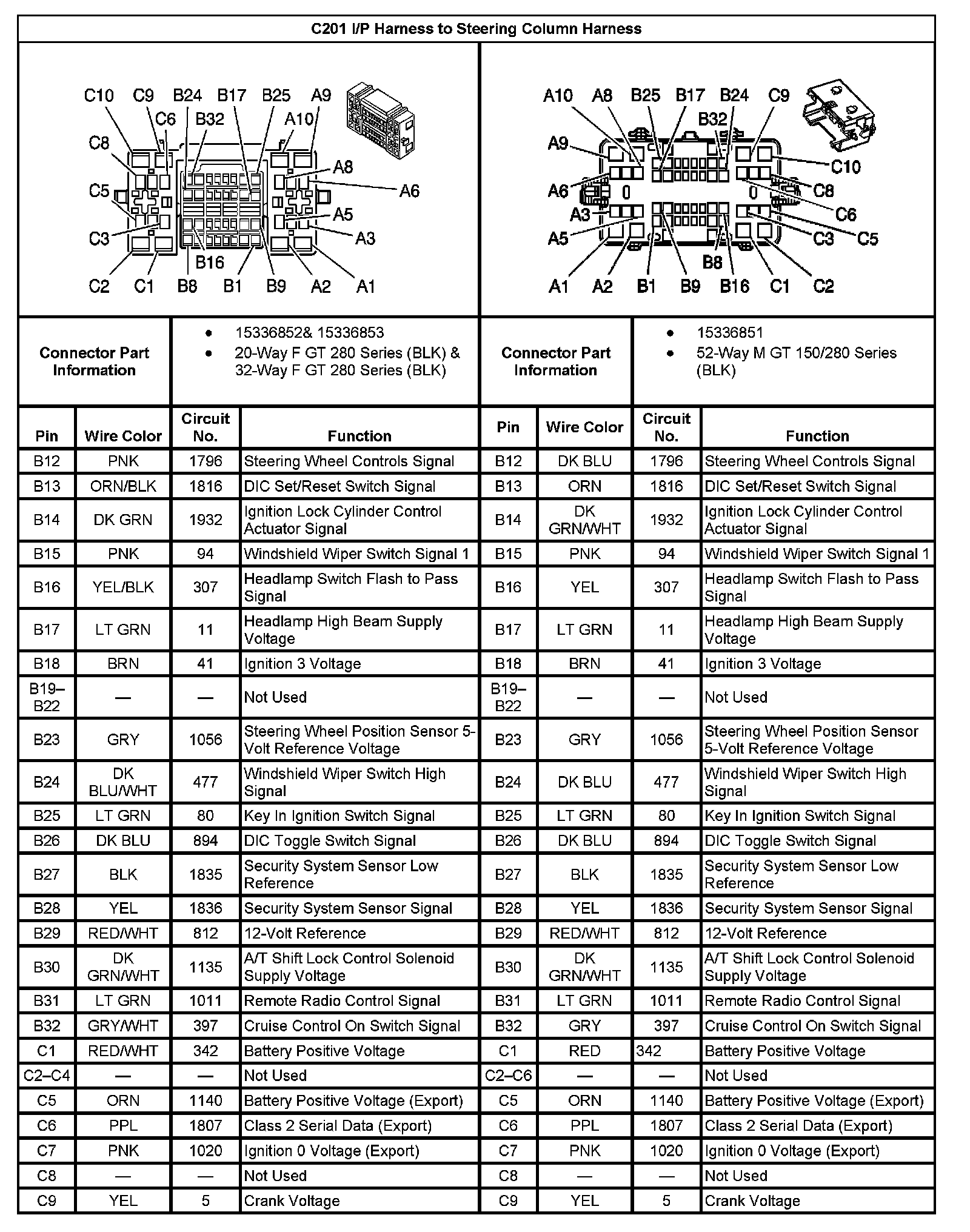 C201 I/P Harness To Steering Column Harness Part 1: