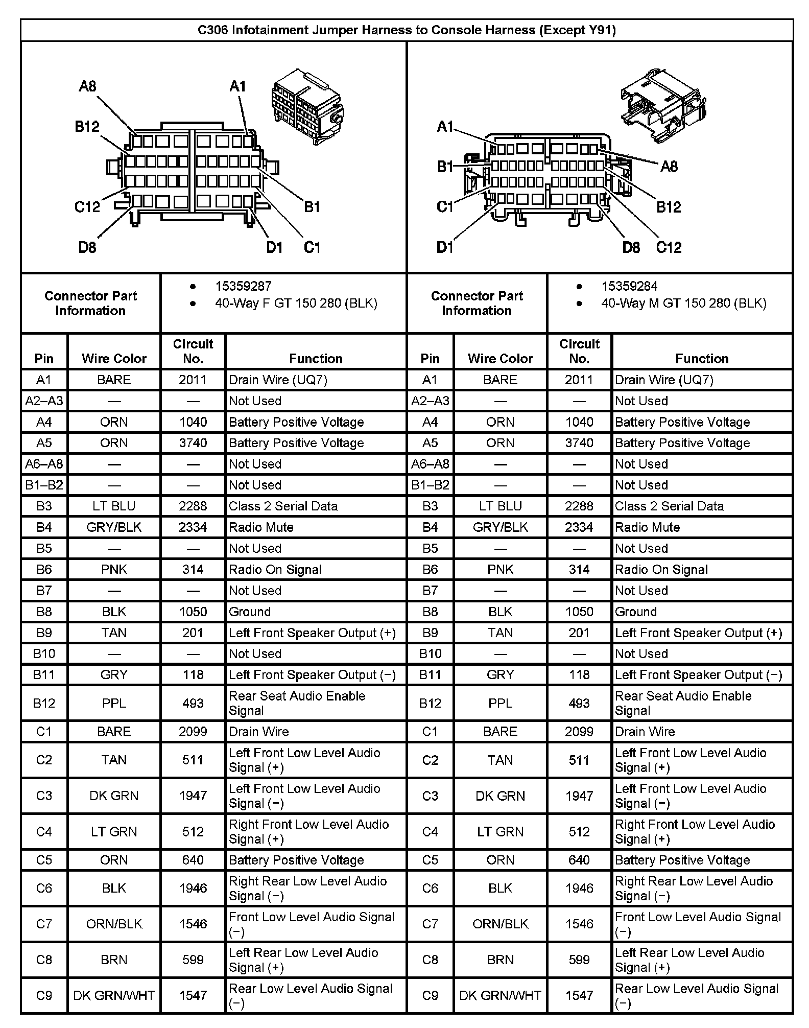 C306 Infotainment Jumper Harness To Console Harness (Except Y91) Part 1: