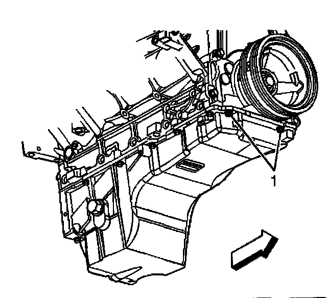 3. Remove the oil pan-to-front cover bolts (1).