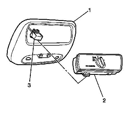 2. Install the blower motor switch (2) to the overhead console.