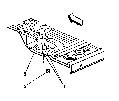 2. Install the two bolts (3) inside the vehicle in order to retain the auxiliary HVAC module to the vehicle.