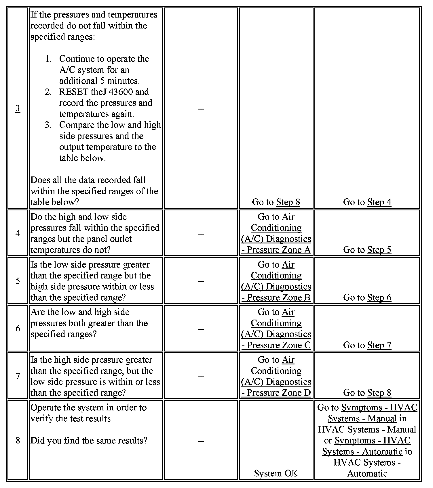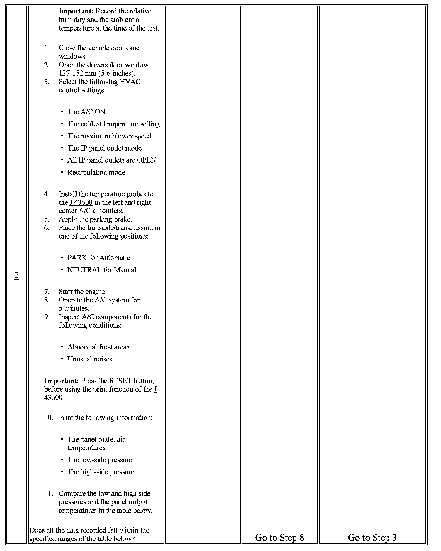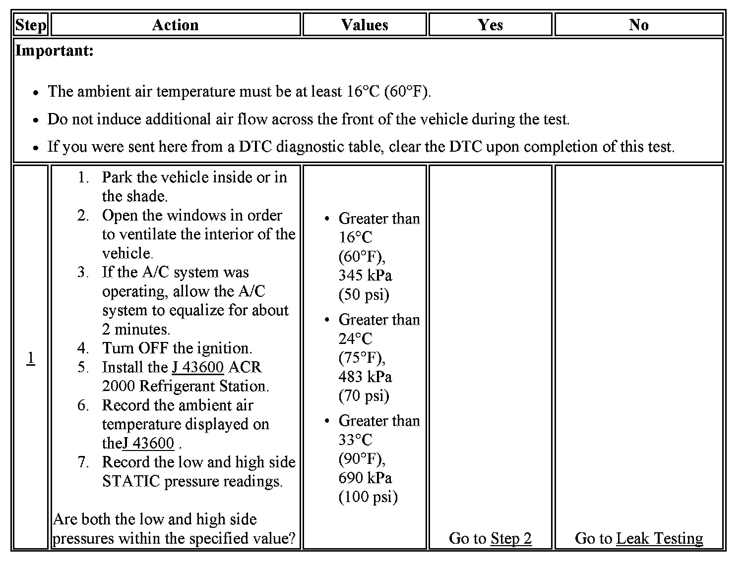 1. This step determines if the A/C system has at least the minimum refrigerant charge required to operate the system without damage.