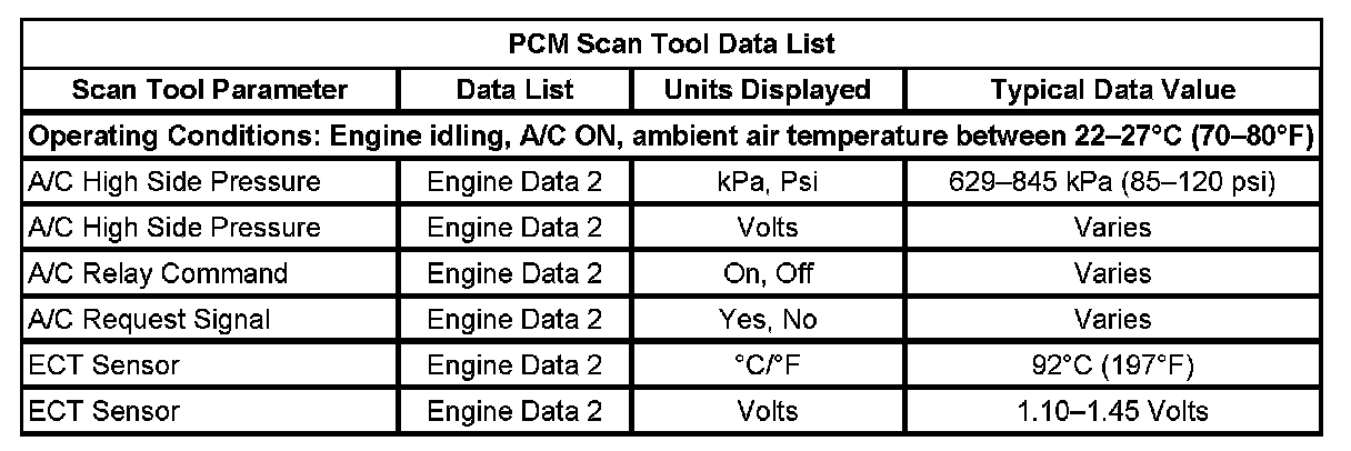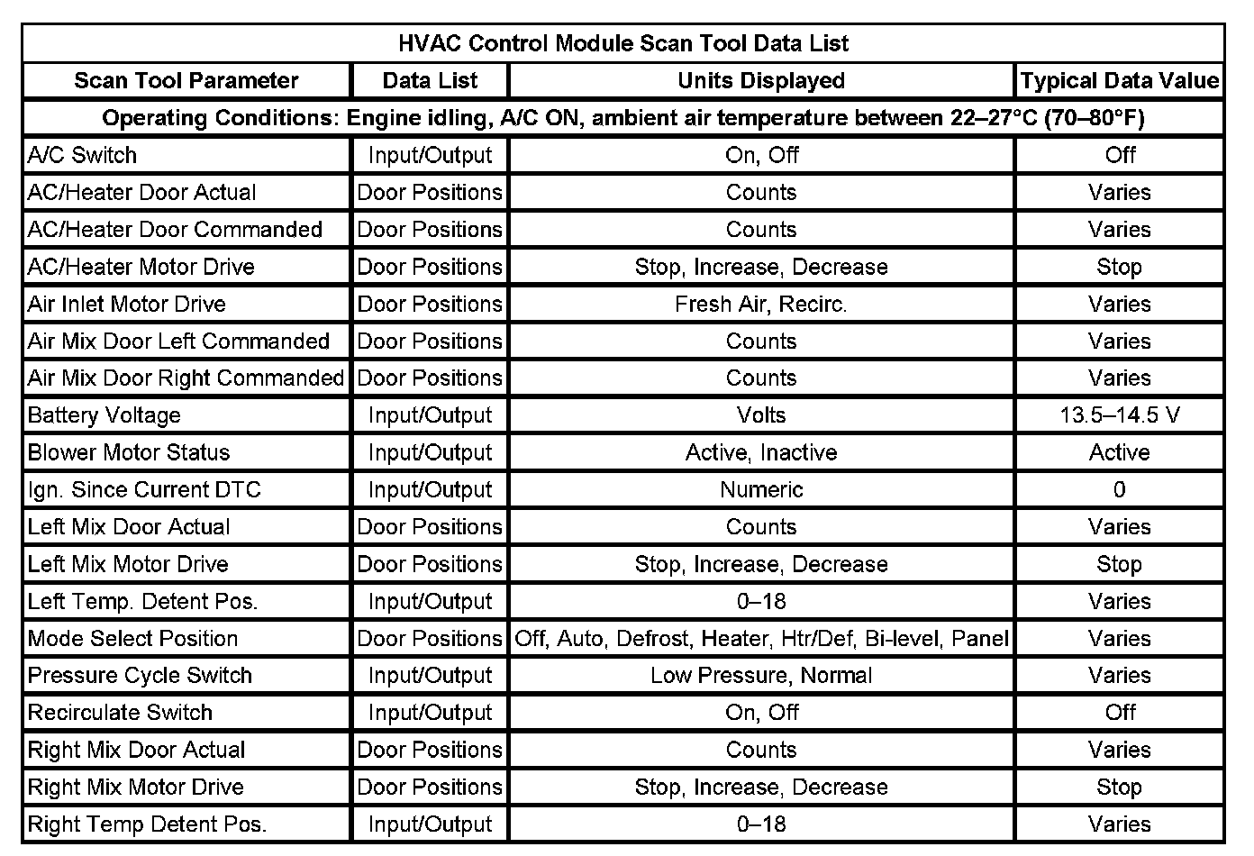 HVAC Control Module Scan Tool Data List: