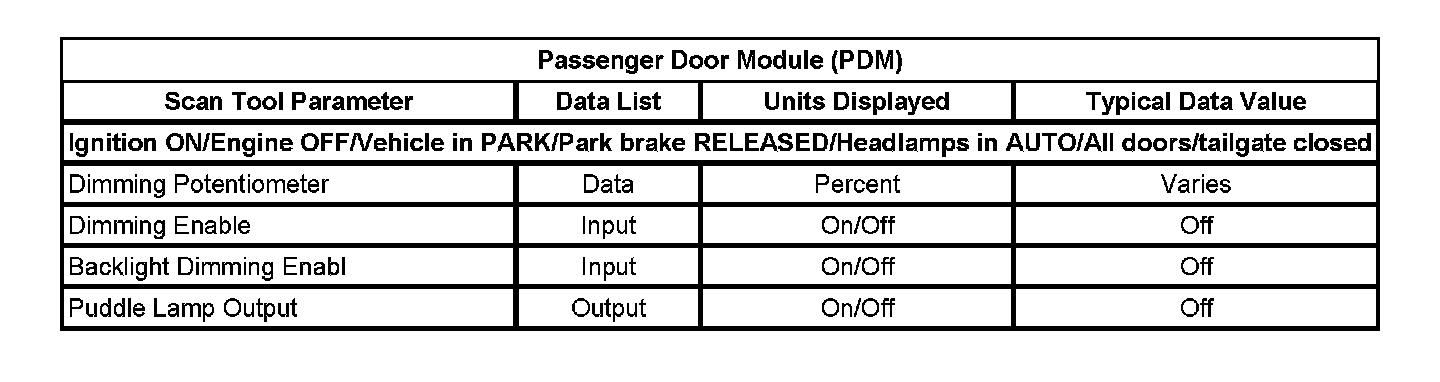 Scan Tool Data List - Passenger Door Module (PDM)