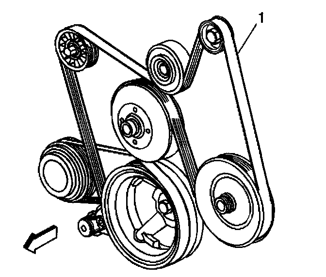 6. Remove the belt (1) from the pulleys and the drive belt tensioner.
