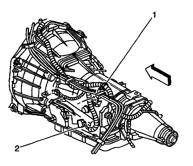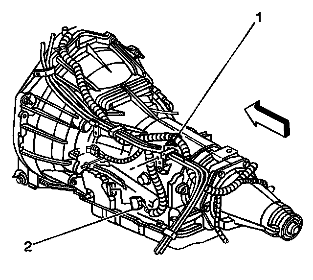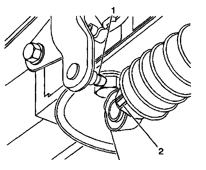 6. Remove the range selector cable end (2) from the range selector lever ball stud (1).
