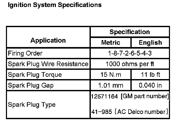 Ignition System: Specifications