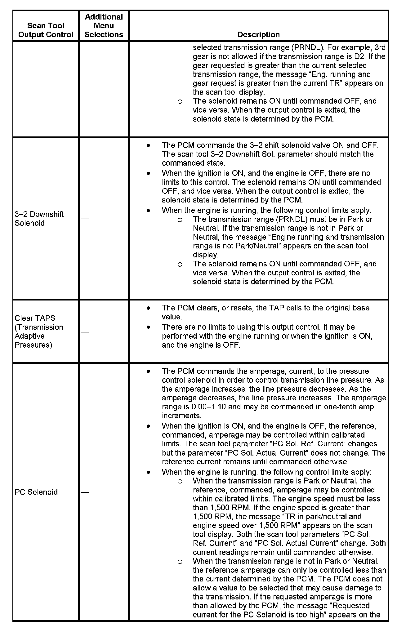 Scan Tool Output Controls