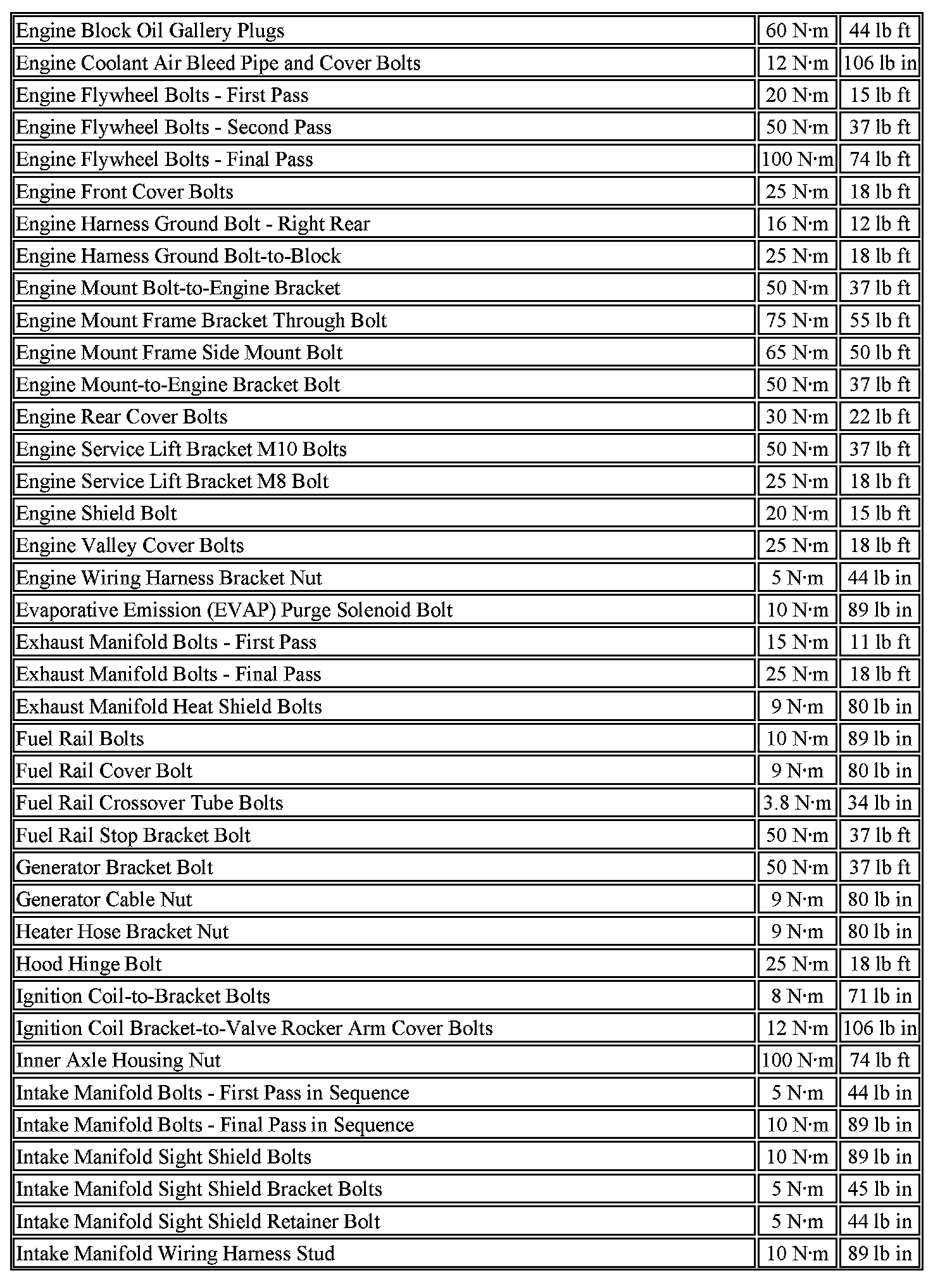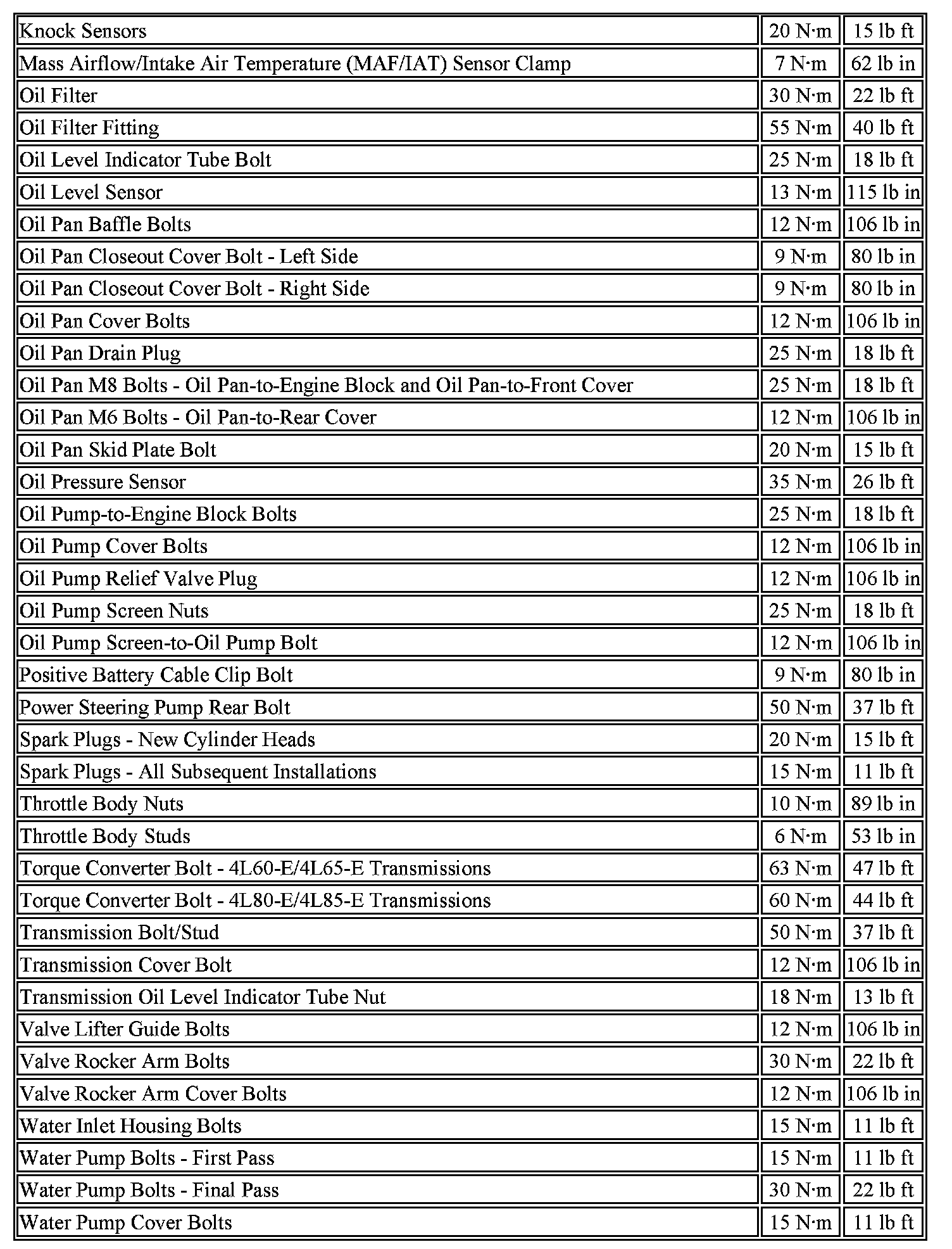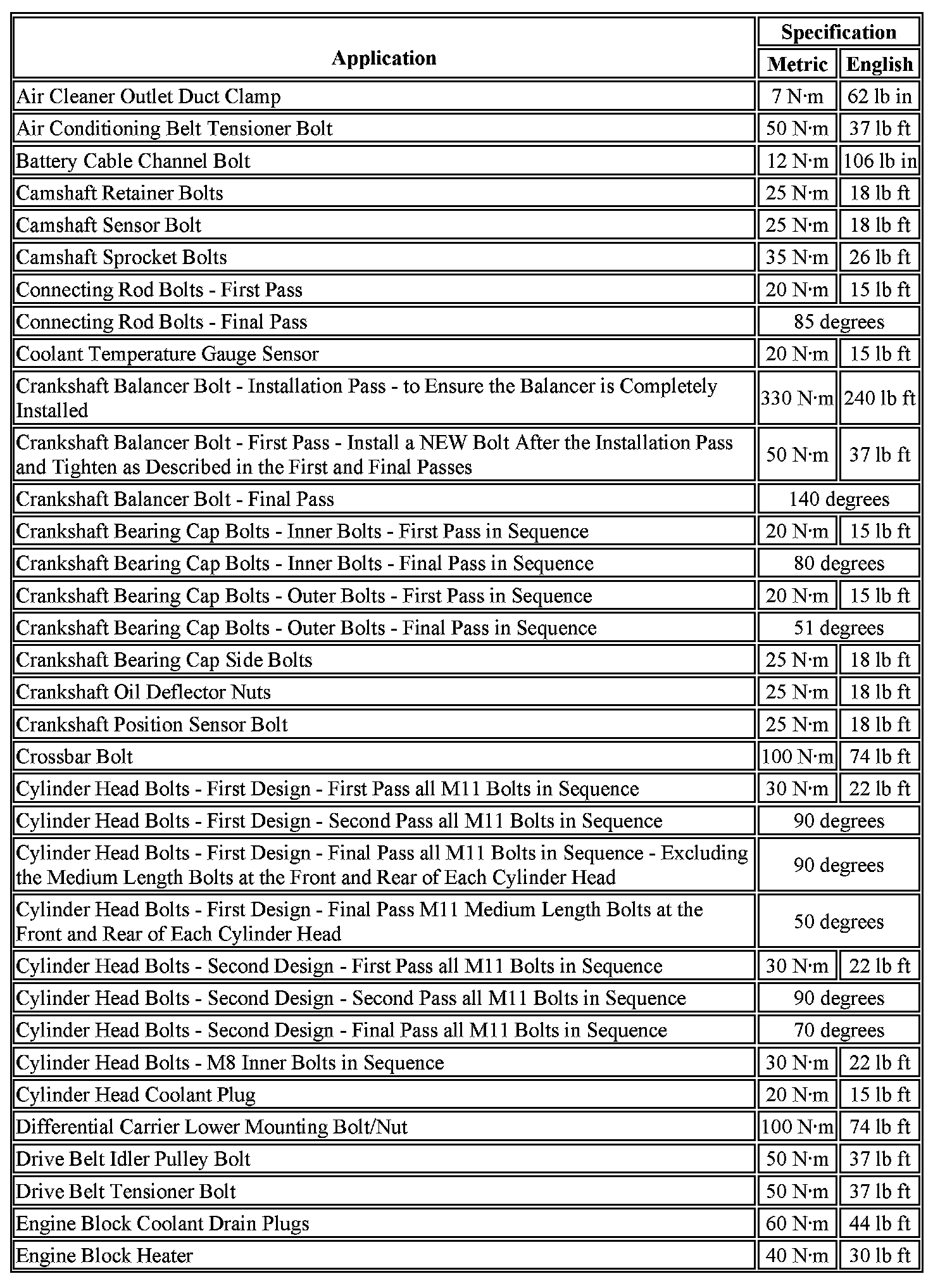Torque Specifications