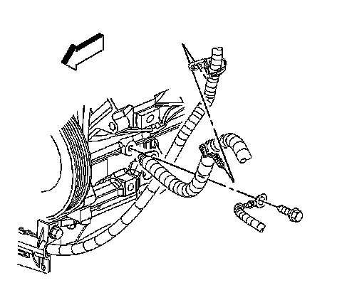 11. Remove the forward lamp wiring harness ground/negative cable bolt.