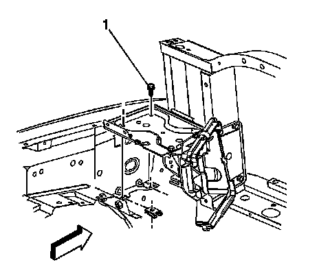 2. Install the bolts (2) to the battery tray reinforcement until snug.
