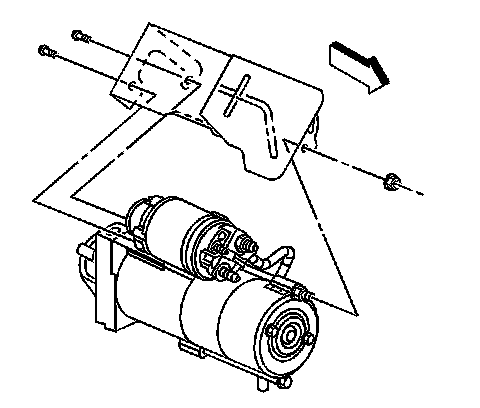 3. If equipped with a 8.1L engine, remove the starter heat shield bolts, and nut.