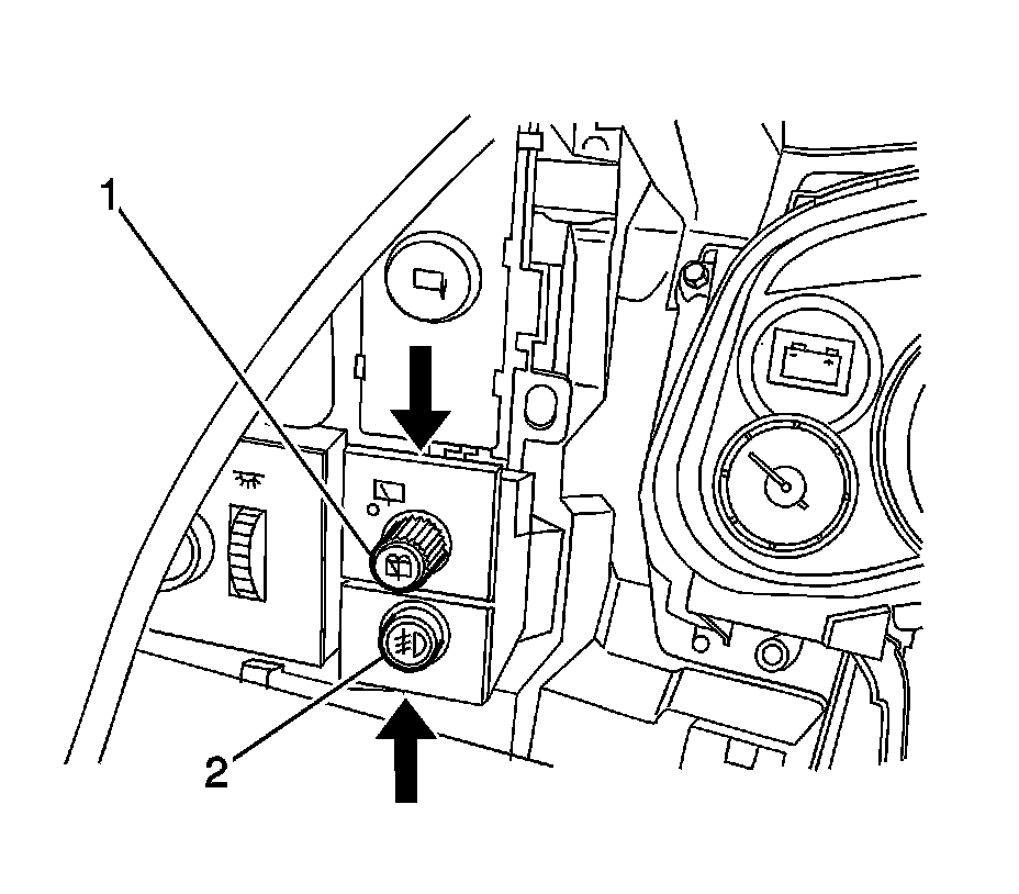 5. Remove the switch from the I/P.The rear wiper switch (1) is replaced as an assembly if the vehicle is equipped with front fog lamps.