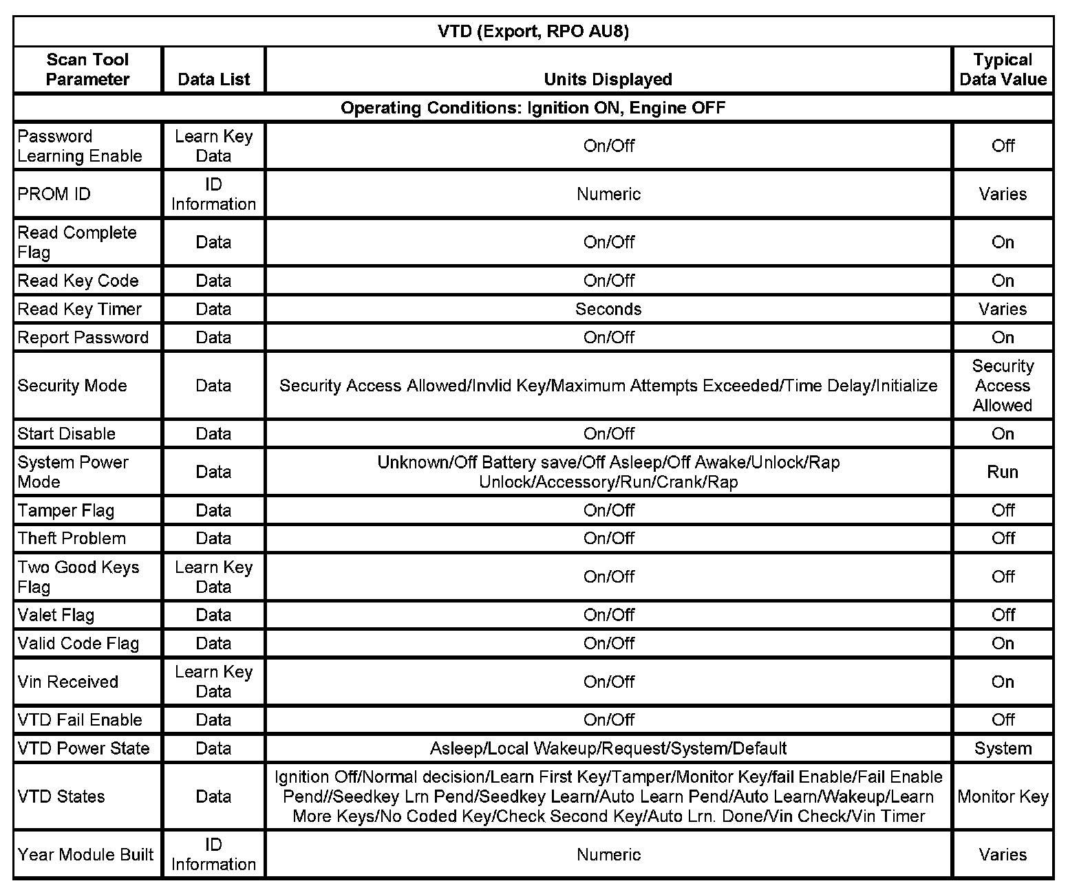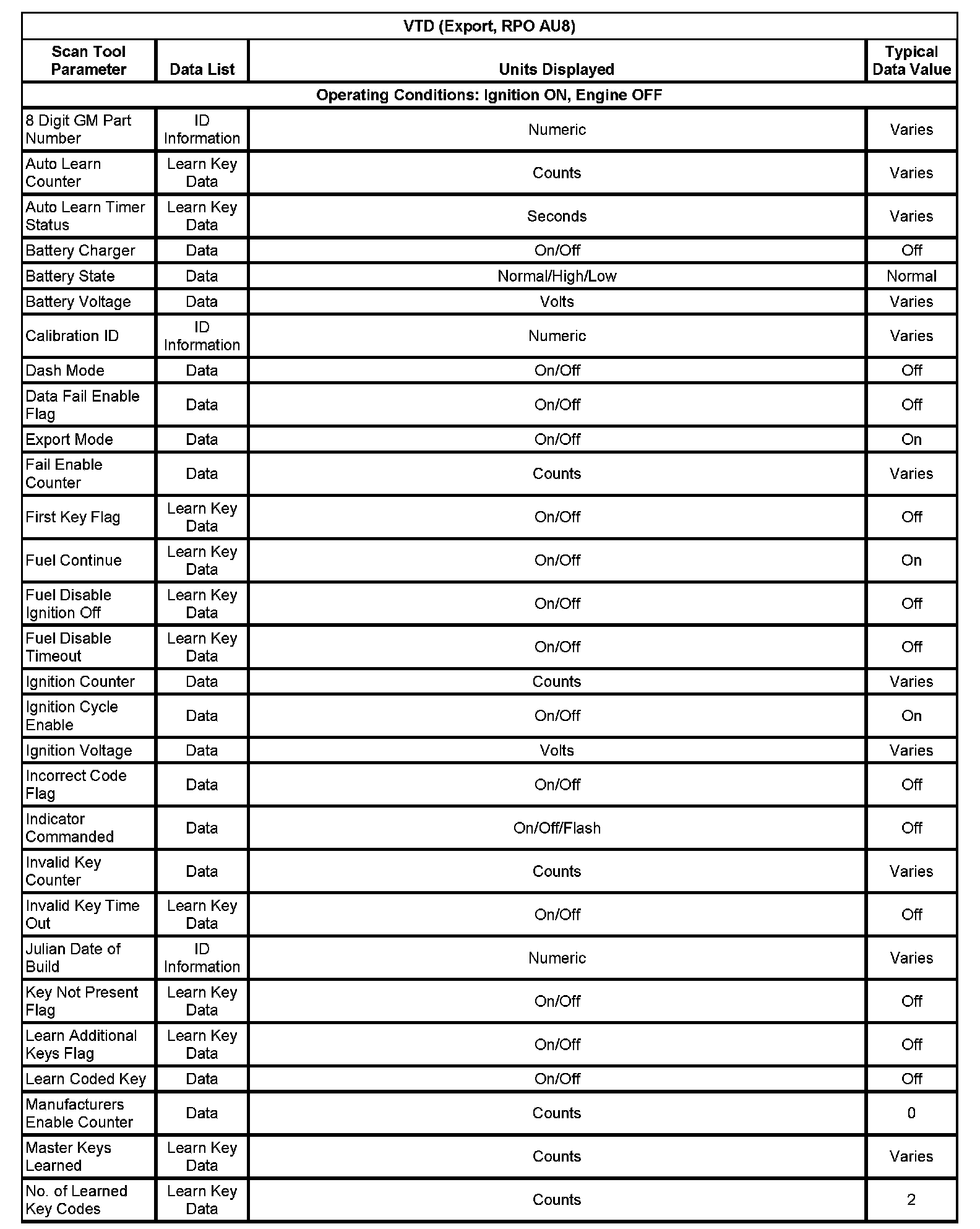 VTD (Export, With RPO Code AU8) Part 1: