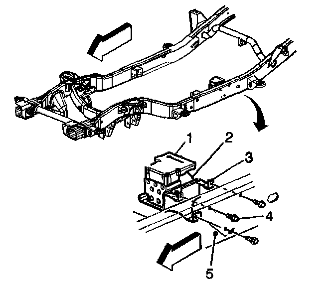 5. Loosen or remove 3 bolts (4) securing the EHCU mounting bracket (3) to the frame rail (5).