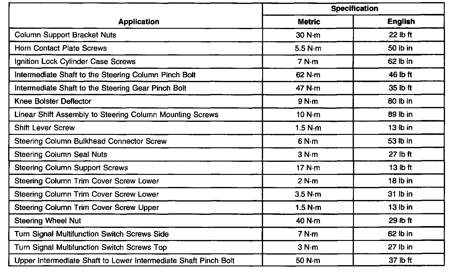 Torque Specifications: