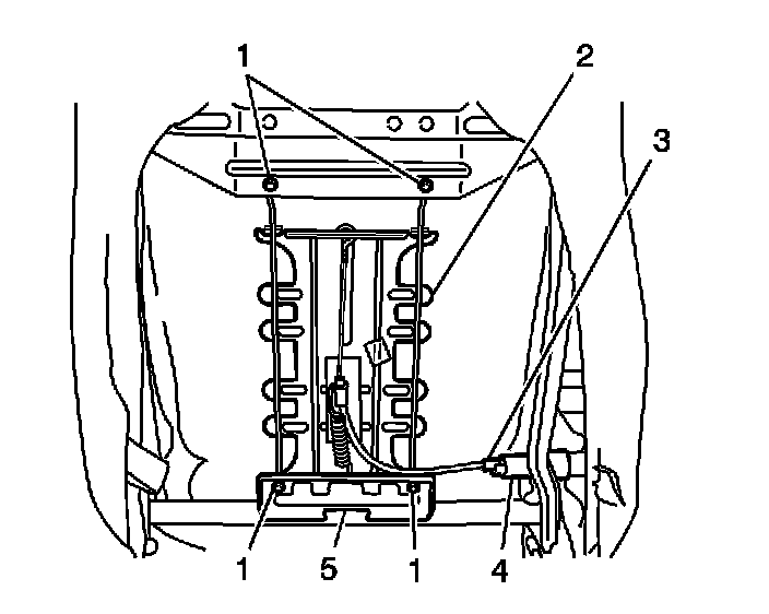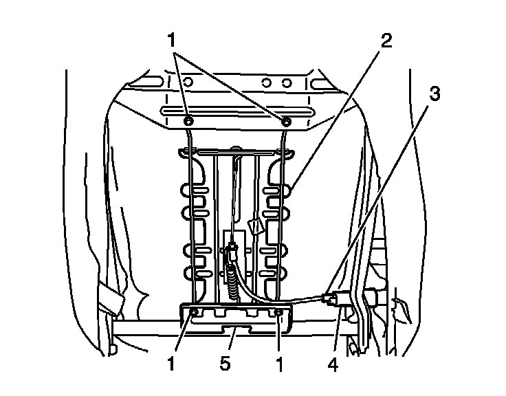 1. Install the lumbar support (2) with the push in retainers (1) to the seat back frame (5).