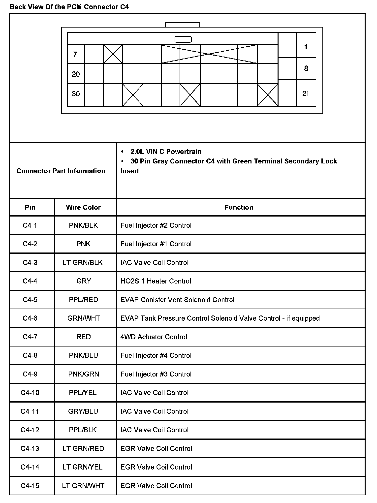 Back View Of The PCM Connector C4 Part 2: