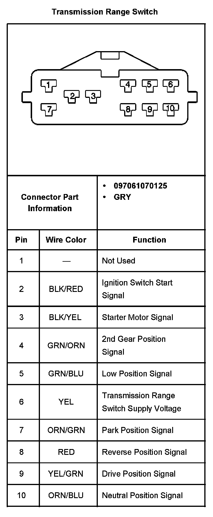 Transmission Position Sensor/Switch: Diagrams