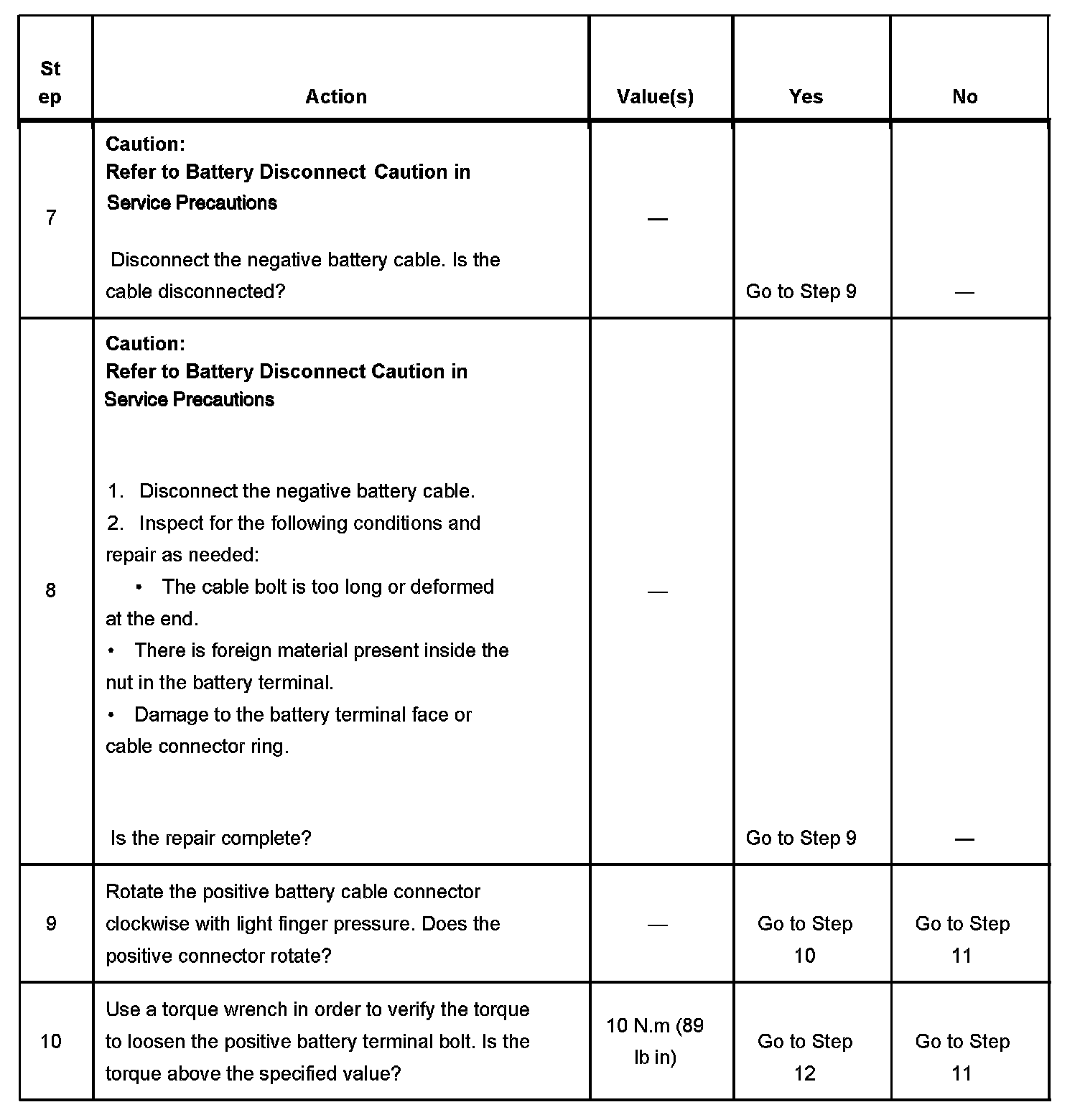 - If correct connections to the battery terminal bolts in the vehicle are in doubt, perform the following steps: