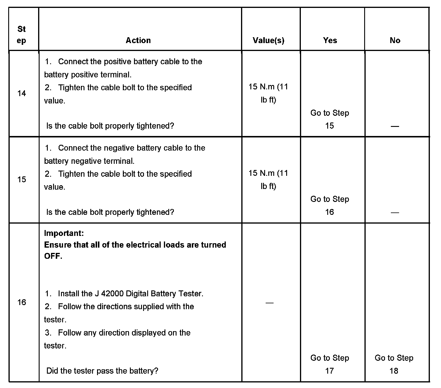 IMPORTANT: The battery test using the J 42000 Digital Battery Tester requires correct connections to the battery terminals. A failure to obtain the correct connections during the test may result in a failed test on a good battery.