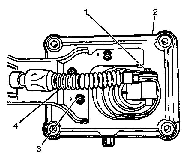 6. Install the shift select cable (4) into the shift select cable bracket at the transmission.