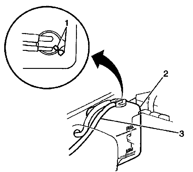 9. Slide the coolant reservoir (2) from the mounting bracket.