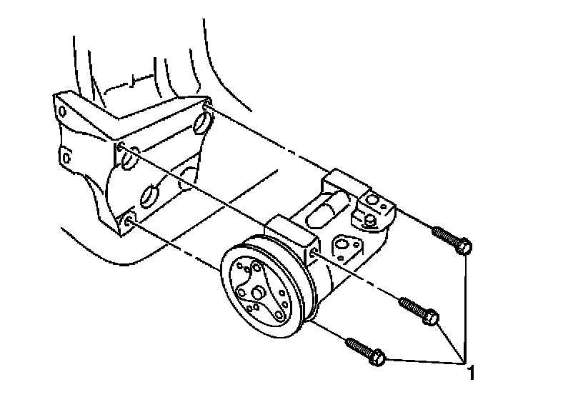 1. Install the compressor to the vehicle. Secure the compressor with the 3 bolts (1).
