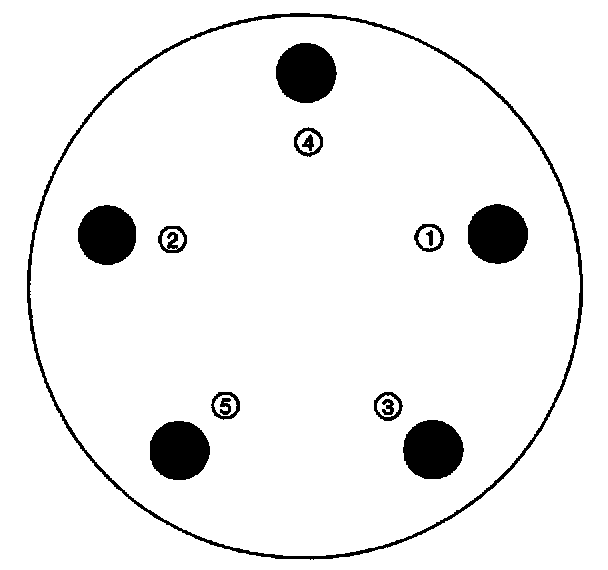 ^ Tighten the wheel nuts in the sequence shown to 100 Nm (73.8 ft. lbs.).