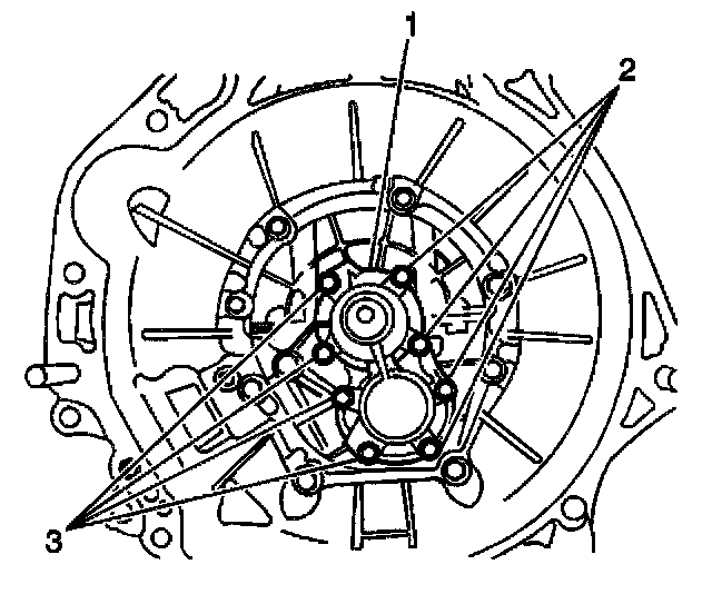 7. Connect the input shaft bearing retainer (1) to the upper and lower case. Secure the input shaft bearing retainer with the eight bolts (2,3).