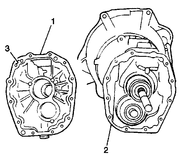 8. Apply Loctite(TM) 599 RTV sealer or equivalent to the rear case mating surface (3).