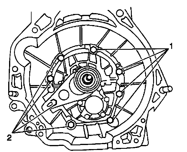 13. Connect the clutch housing to the upper and lower case. Secure the clutch housing with eight bolts (1,2).