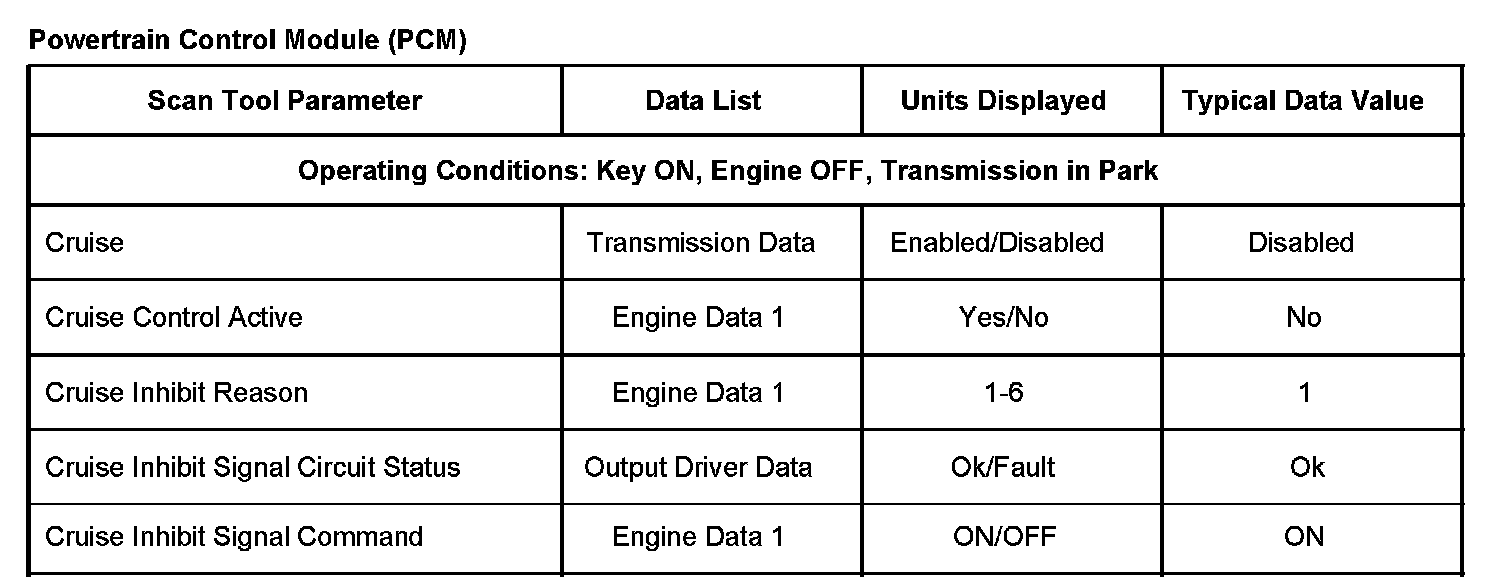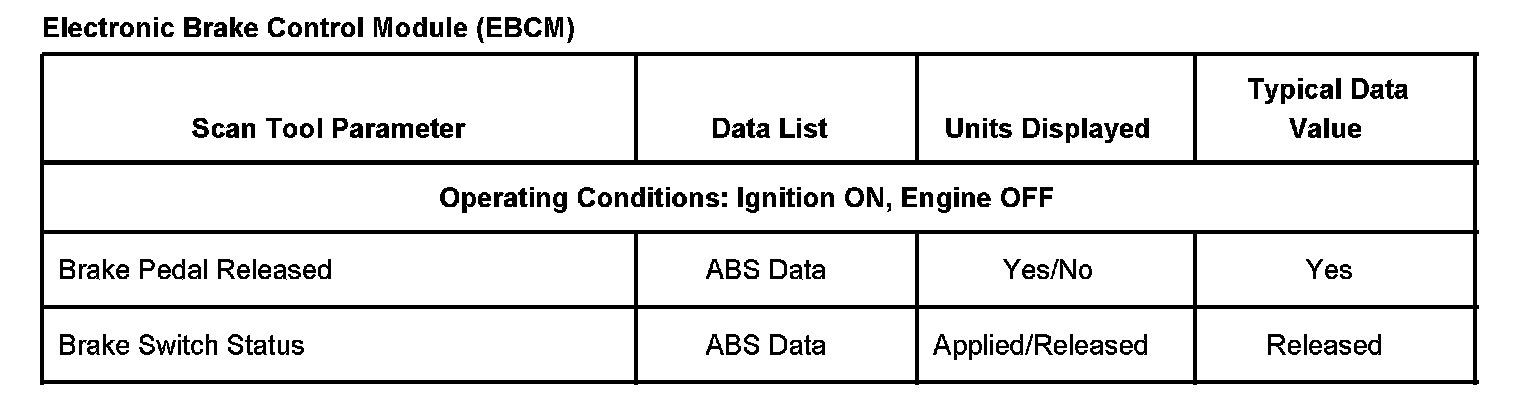 Scan Tool Data List - Electronic Brake Control Module (EBCM):
