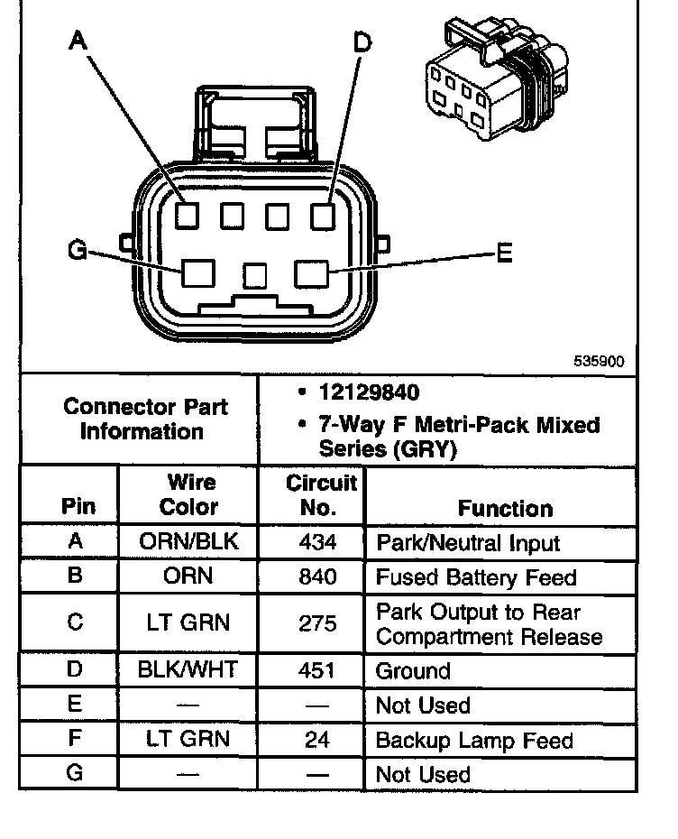 Transmission Range Switch Connector, Wiring Harness Side: