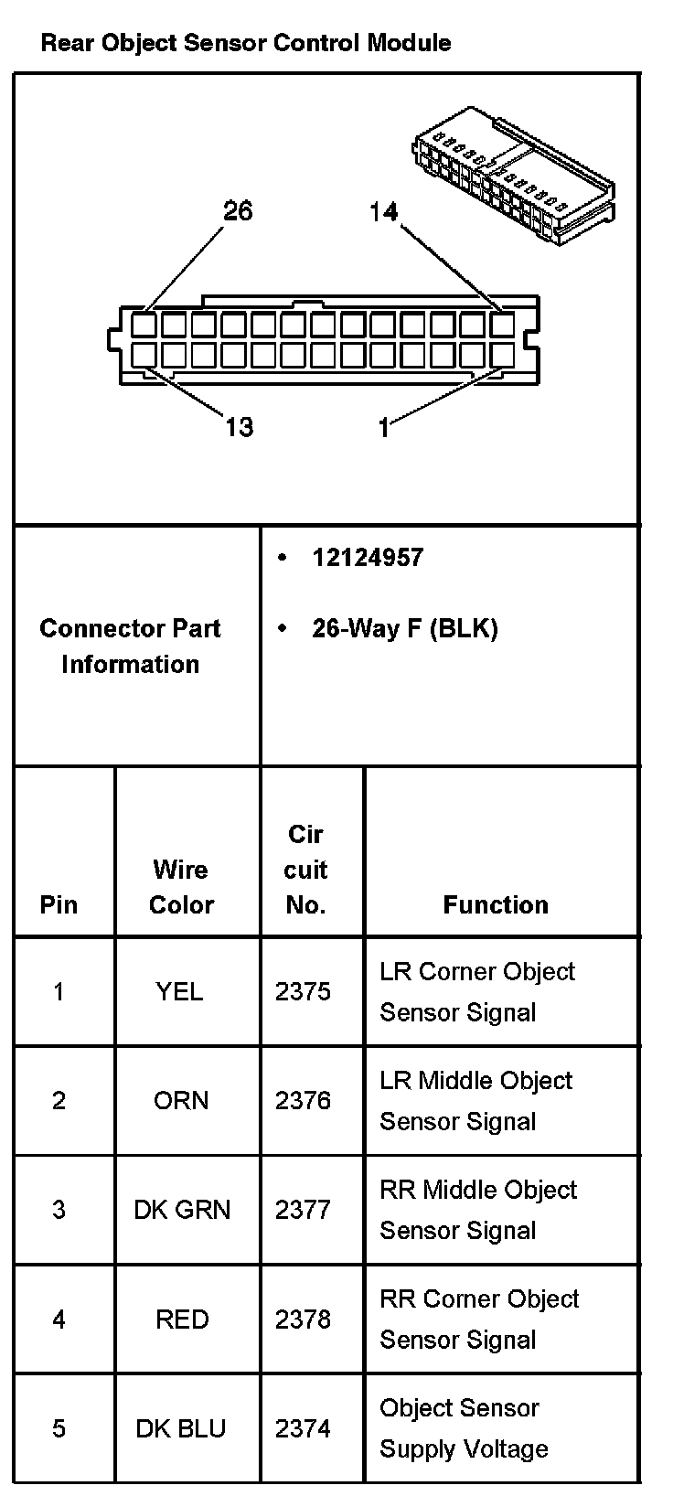 Rear Object Sensor Control Module Part 1: