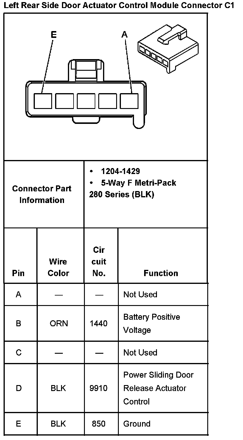 Left Rear Side Door Actuator Control Module Connector C1: