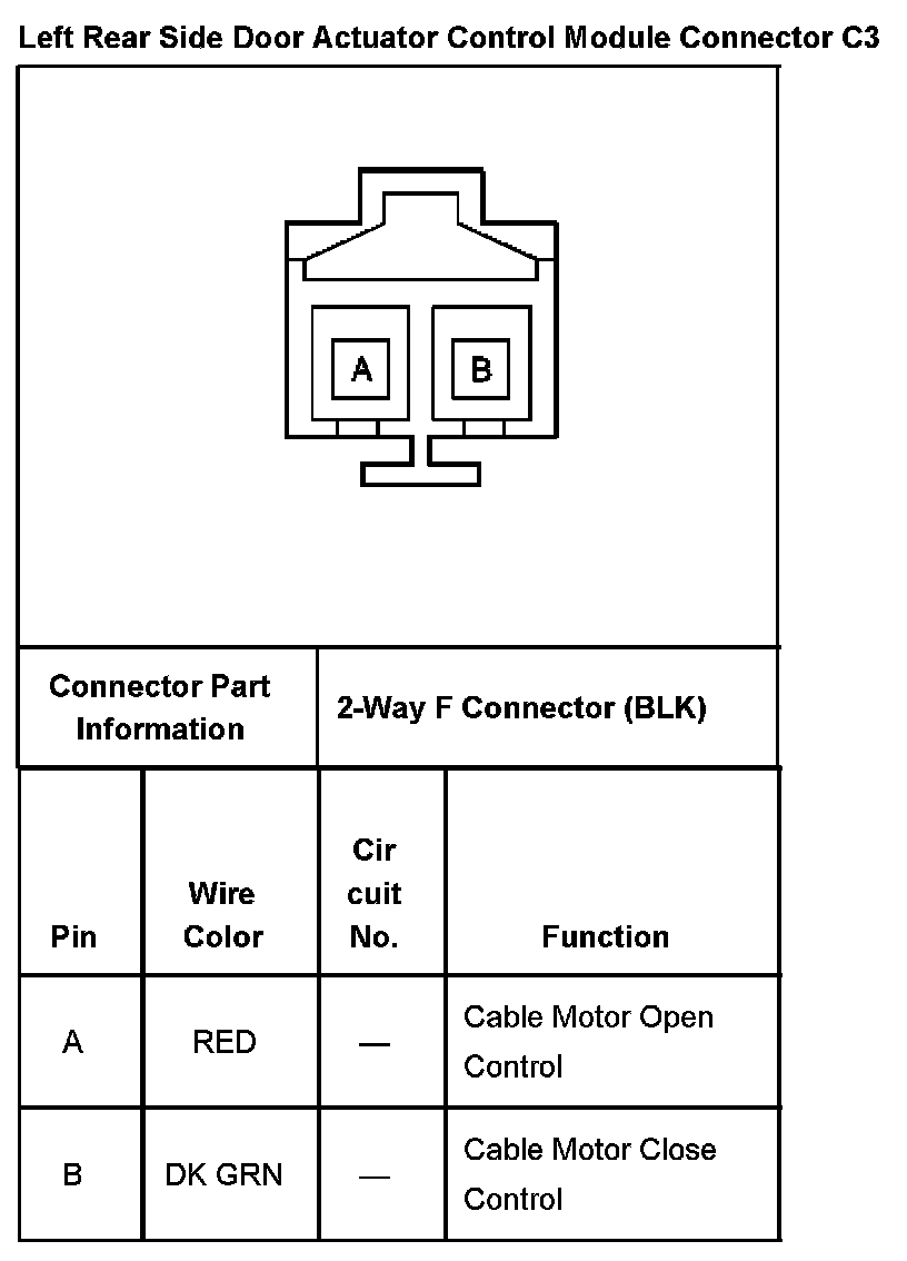 Left Rear Side Door Actuator Control Module Connector C3: